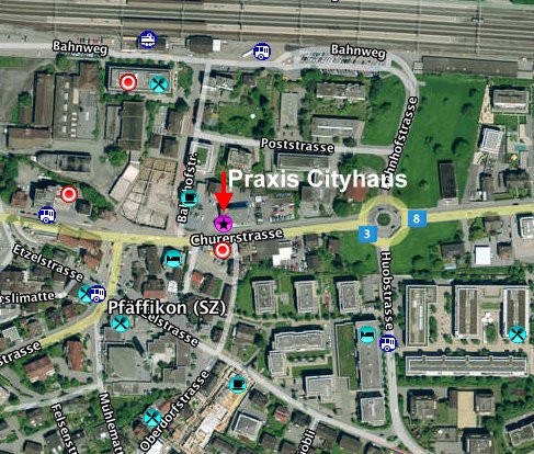 Blaue Zone auf dem Dorfplatz Pfäffikon (1 Minute entfernt)